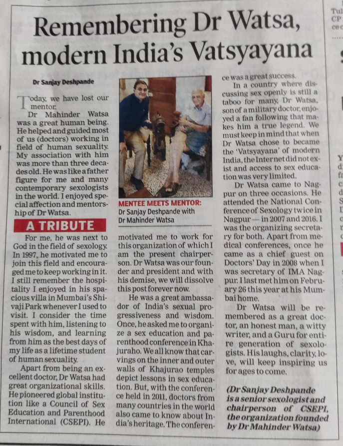 Tribute to My Guru Late Dr Watsa, in today's "Times of India"